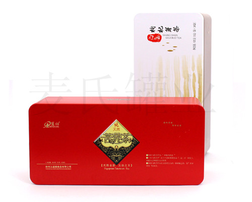 枸杞芽茶鐵盒,寧夏枸杞葉茶馬口鐵盒,采用單面1專色+四色印刷工藝制作,外過(guò)水性亮光油,內(nèi)過(guò)金油油,鐵盒整體為蓋、身、底印刷處理。此款鐵盒為200*90*83mm的規(guī)格尺寸,可包裝720g的枸杞芽茶,可選擇大容量的包裝需求。