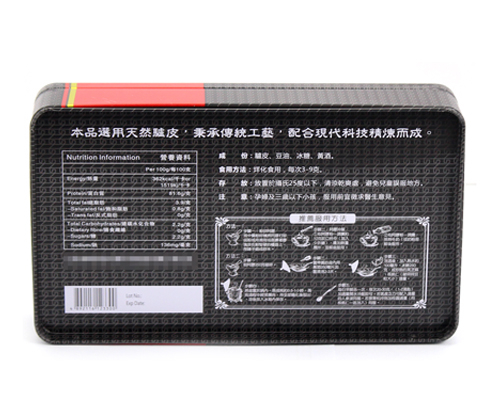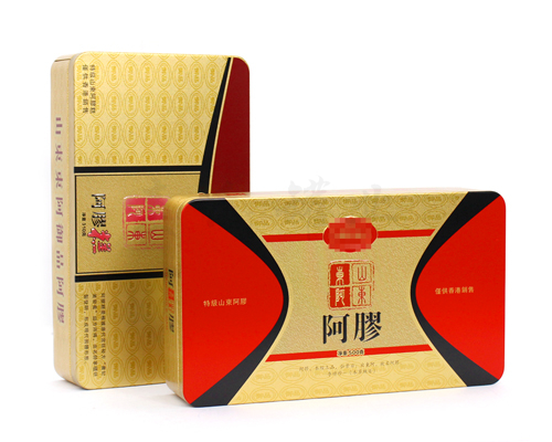 新款山東阿膠鐵皮盒子,鹿角膠馬口鐵盒,明亮的顏色,經(jīng)典的形狀,而不失大氣,簡單時尚,此款鐵盒包裝阿膠再適合不過,然而,不僅可以提高產(chǎn)品的品位,更能增加贈送方的面子。